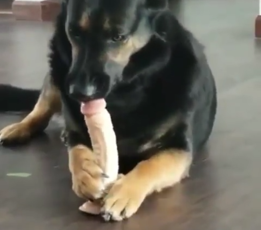 "Oui, là il joue avec un os en caoutchouc."